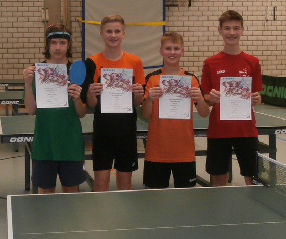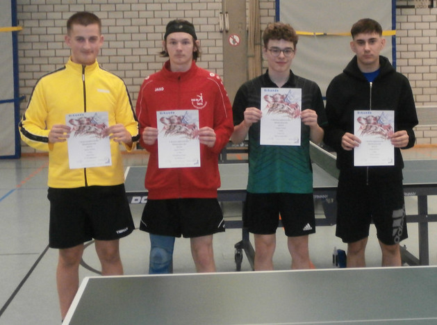 Auf eine erfolgreiche Saison kann die 2. Jungenmannschaft der TT-Abteilung zurückblicken. Ben Wiermann, Lian Höra und Jonas Ungar-Hermann waren in der Bezirksklasse B am Start. Am Ende der Runde hatten die Jungs 9:1 Punkte auf dem Konto und damit die Meisterschaft in der Tasche.