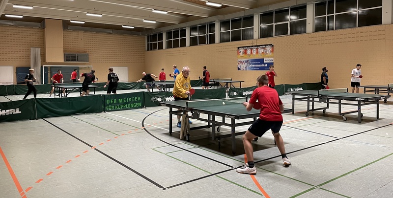Traditionsgemäß veranstaltete die Abteilung zwischen Weihnachten und Silvester wieder ihr 2er-Mannschaftsturnier. Das Teilnehmerfeld war im Gegensatz zu den Vorjahren etwas dünner, da coronabedingt unter 2Gplus-Bedingungen gespielt werden musste. Die abgebildeten Aktiven trafen sich in der TSG-Halle. Die 2er-Teams wurden anhand der QTTR-Punkte so zusammen gestellt, dass sie von der Spielstärke her möglichst ausgeglichen waren.