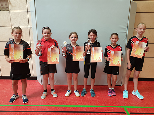 Unsere Jugendspielerin Hanna Forgacs (2. von links) belegte beim Top 10 Turnier des BTTV in der AK 11 den 2. Platz.